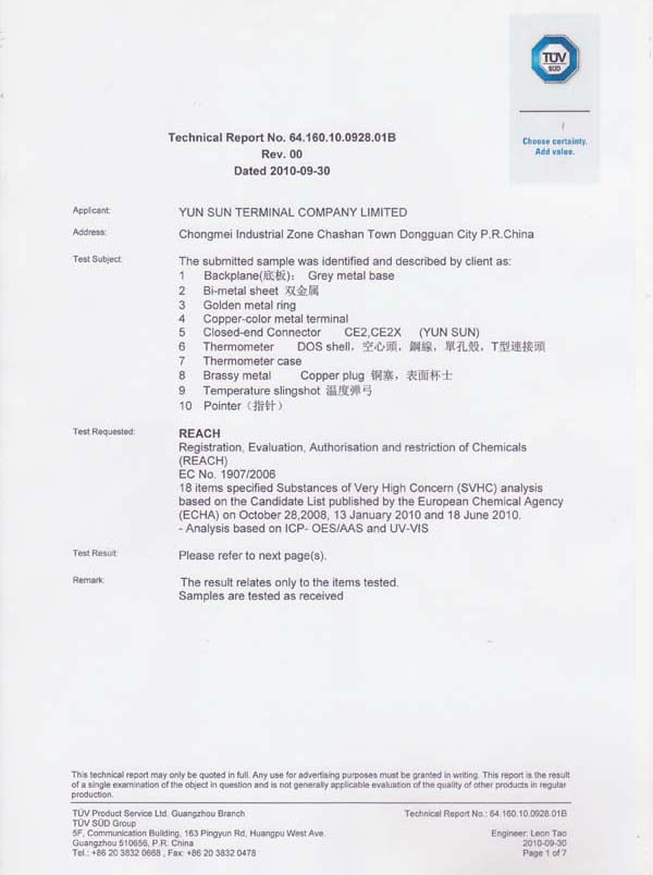TUV证书二