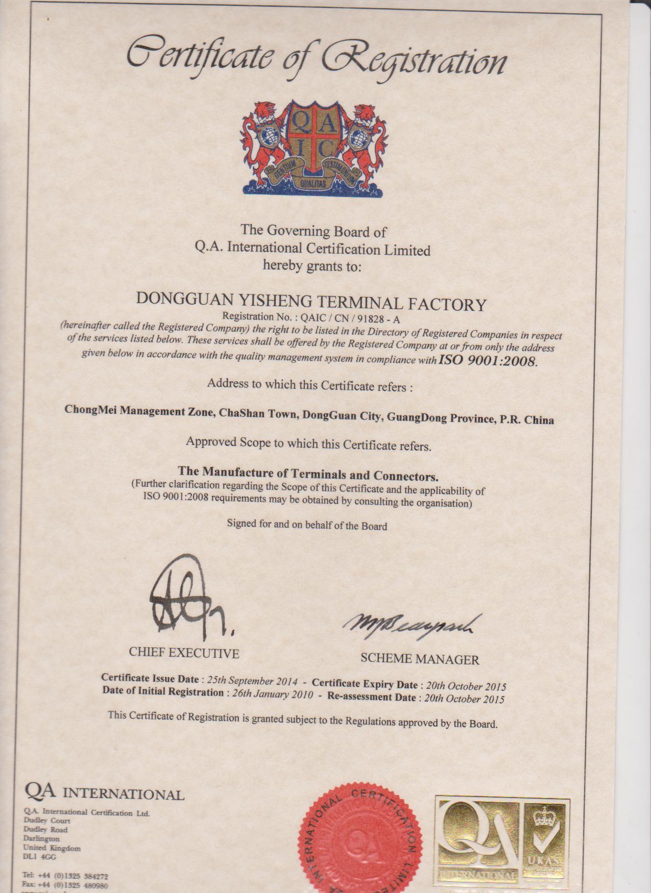 裕升ISO9001证书