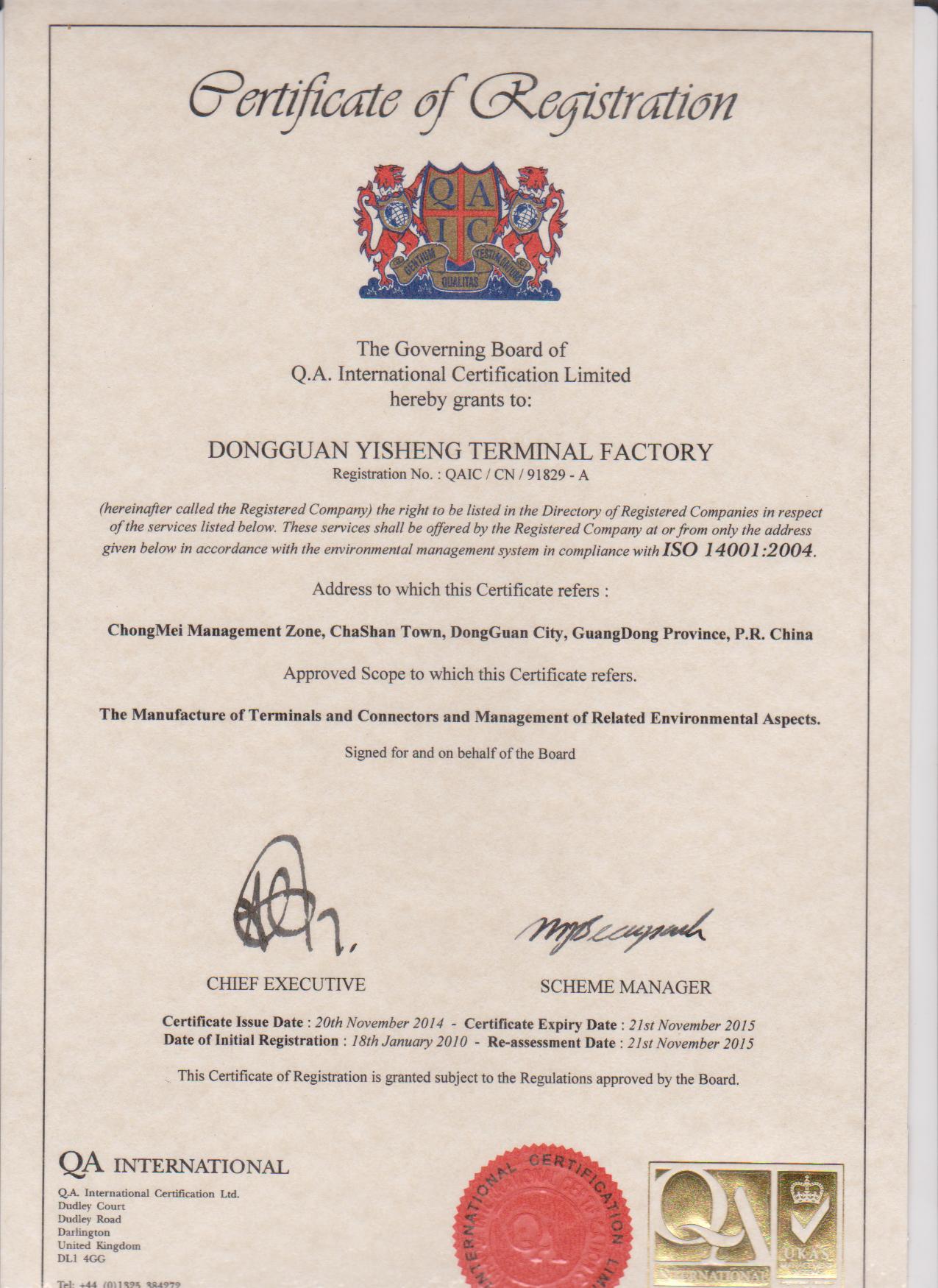ISO14001证书